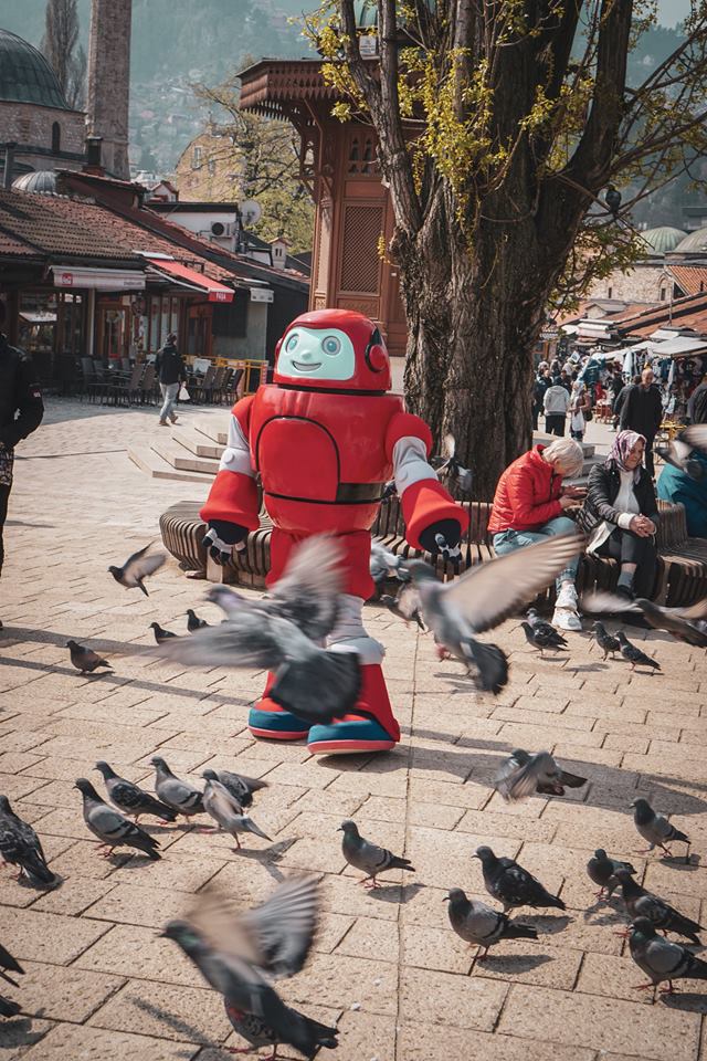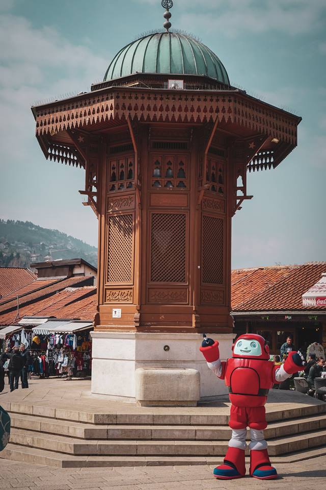 A kako Gizmo voli upoznati grad u koji je došao, morali smo ga odvesti da prošeta Baščaršijom, pomiriše ćevape, potjera golubove sa Sebilja, pogleda Miljacku i Vijećnicu te naravno, kao i svaki ljubitelj nogometa, posjeti Željin stadion (NK Željezničar Sarajevo). Nažalost nije sreo nikoga od igrača, ali nas je zato vrlo ljubazno osoblje kluba uvelo na stadion, popričalo s nama i zabilježilo susret fotografijama. Do sljedećeg viđenja, drago Sarajevo!