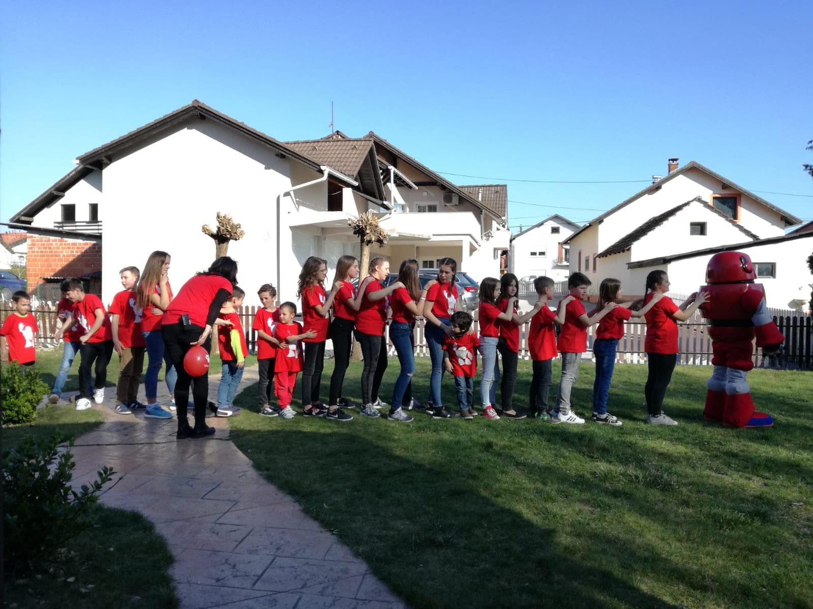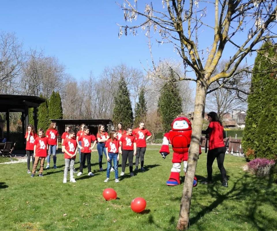 Došao je i taj dan: snimamo spot za „Pjesmu spasenja“! Naši prijatelji iz studija 4H iz Čakovca odradili su sjajan posao za nas! U dvorištu kuće njihovih prijatelja u Mačkovcu okupilo se 20ak djece kako bi sudjelovala u snimanju. Uz igru i zabavu, sokiće i kekse, plesali smo, smijali se, igrali nogomet s Gizmom, upoznavali susjede i na kraju složili materijal koji će vam pomoći da sami naučite koreografiju uz Gizmovu omiljenu „Pjesmu spasenja“.